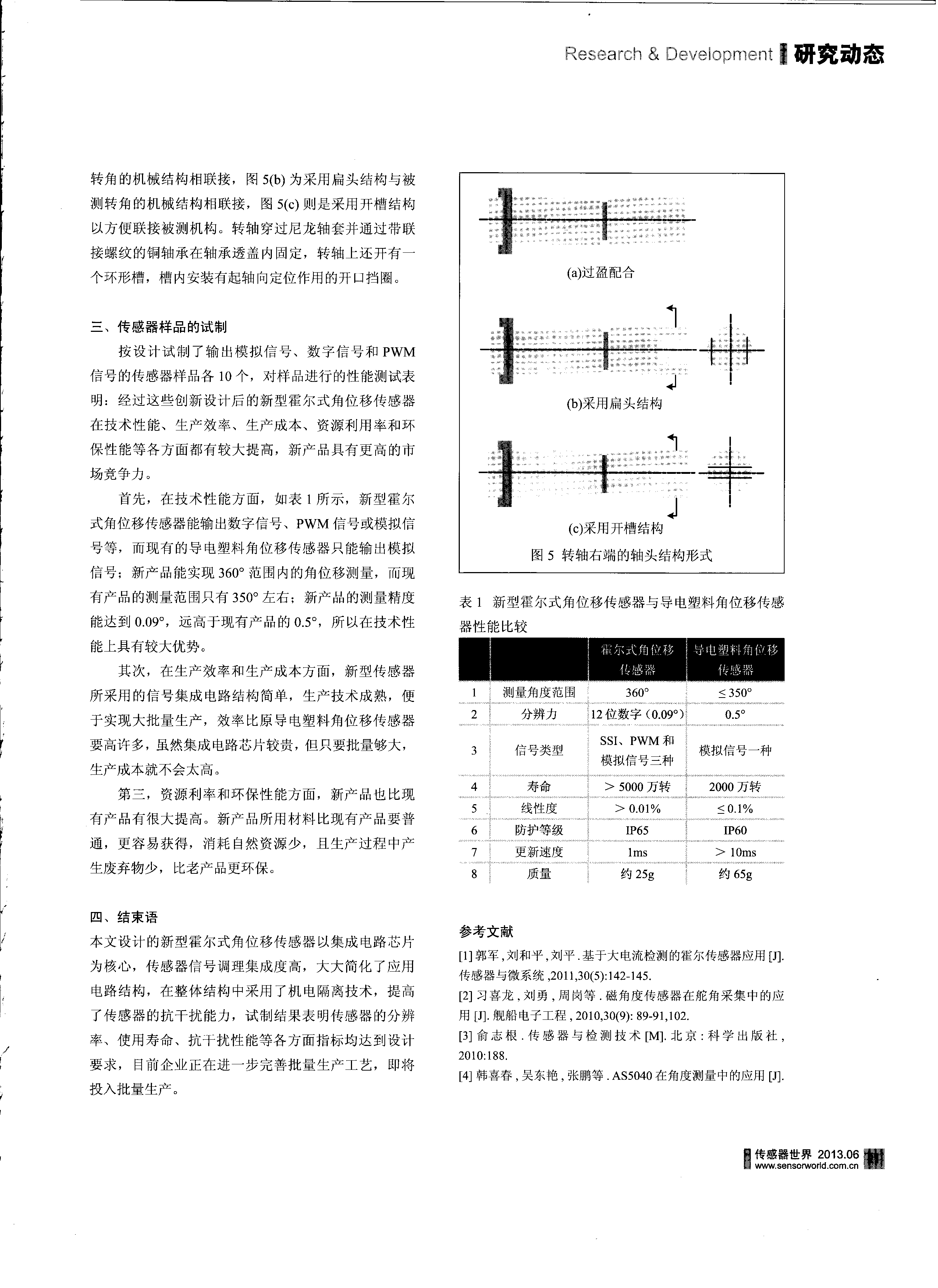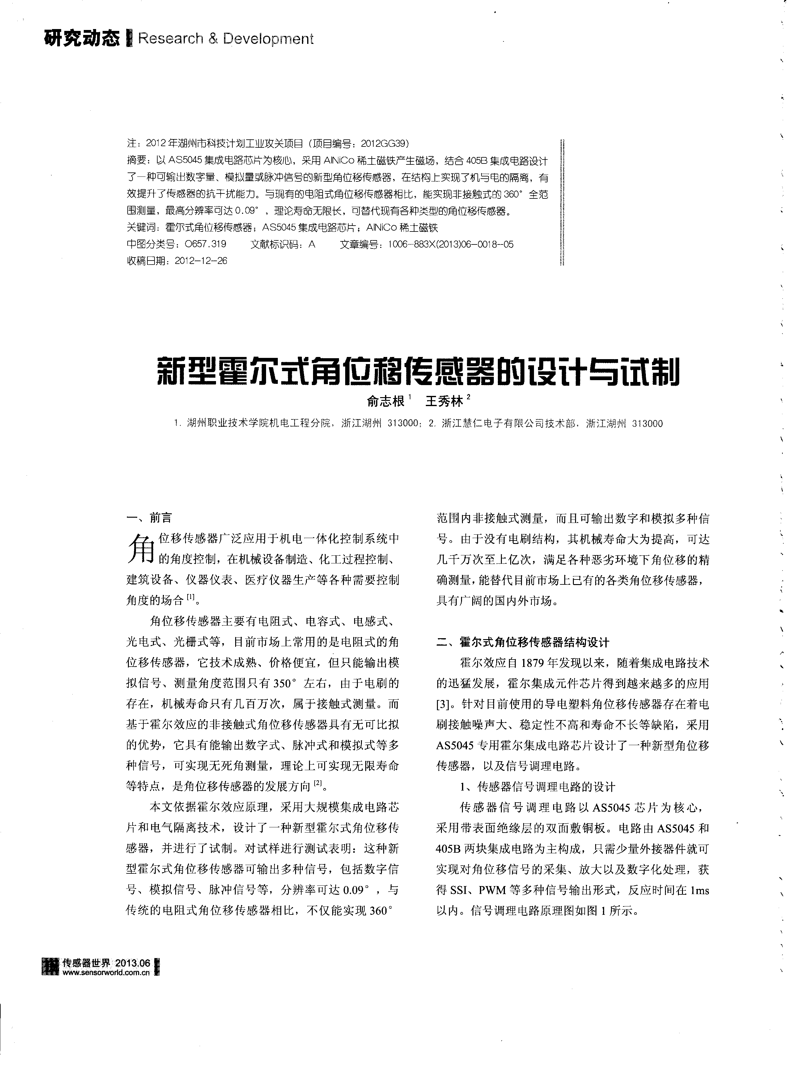 新型霍尔式角位移传感器的设计与试制 - 新世联传感器