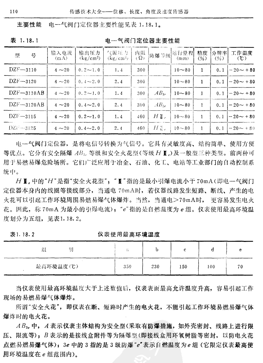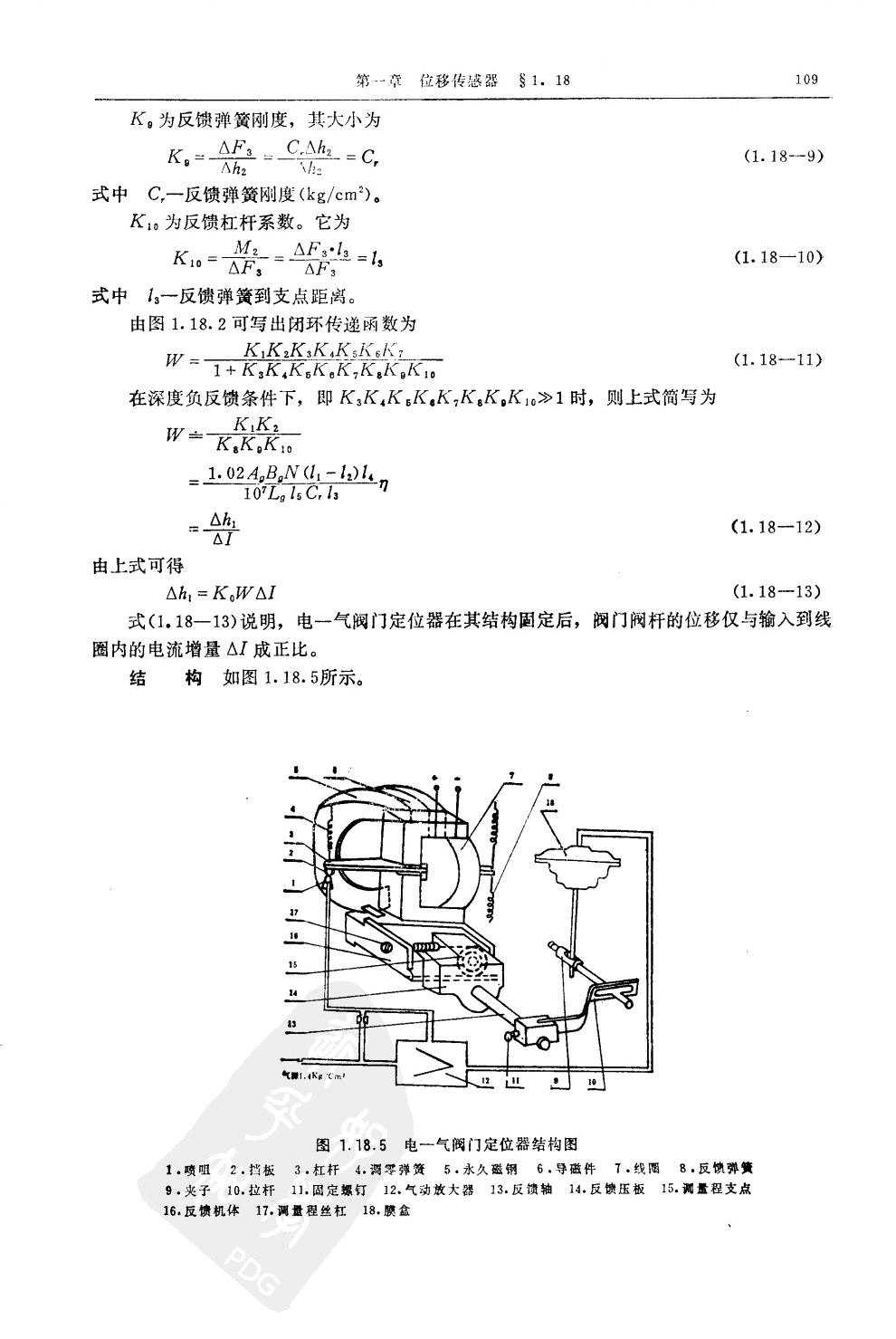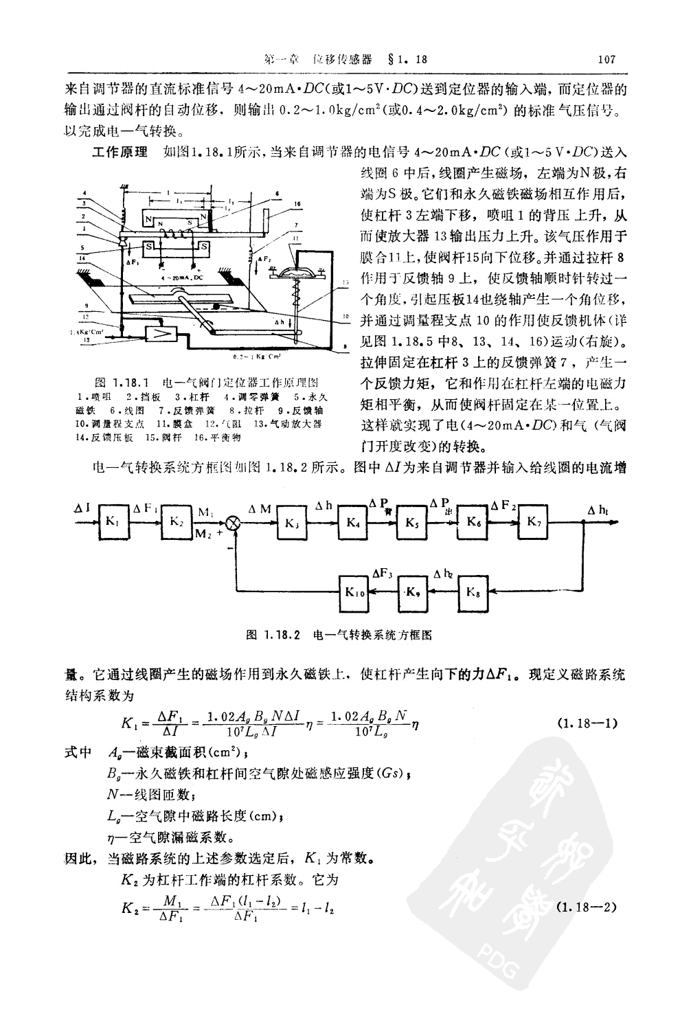 | 以下是引用片段: 电一气阀门定位器,为DDZ-1型电动单元组合仪表中的一个重要的转换单元。它把来自调节器的直流标准信号4〜20mA/·DC(或1〜5V·DC)送到定位器的输入端,而定位器的 输出通过阀杆的自动位移,则输出0.2〜1.0kg/cm2(或0.4〜2.0kg/cm2)的标准气压信号。 以完成电一气转换。 工作原理 如图1.18.1所示,当来自调节器的电信号4〜20mA·DC(或1~5V·DC)送入线圈6中后,线圈产生磁场,左端为N极,右端为S极。它们和磁场相互作用后, 使杠杆3左端下移,喷咀1的背压上升,从 而使放大器13输出压力上升。该气压作用于 膜合11上,使阀杆15向下位移。并通过拉杆8 作用于反馈轴9上,使反馈轴顺时针转过一 个角度,引起压板14也绕轴产生一个角位移, 并通过调量程支点10的作用使反馈机体(详见图1.18.5中8、13、14、16)运动(右旋)。 拉伸固定在杠杆3上的反馈弹簧7,产生一 个反馈力矩,它和作刖在杠杆左端的电磁力 矩相平衡,从而使阀杆固定在某一位置上。 这样就实现了电(4〜20mA·DC)和气(气阀门开度改变)的转换。 |