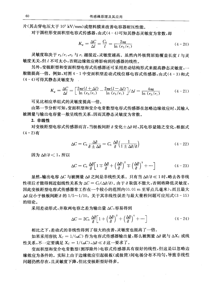 | 文摘: 变面积M和变介电常数型(测抒除外)电容式传感器具有很好的线性,仍 这是以忽略边 缘效应为条件的。实际上由于边缘效应引起极板(或极筒) 间电场分布不均匀,导致非线性 问题仍然存在,且灵敏度下降,但比变极 距型好得多。 |