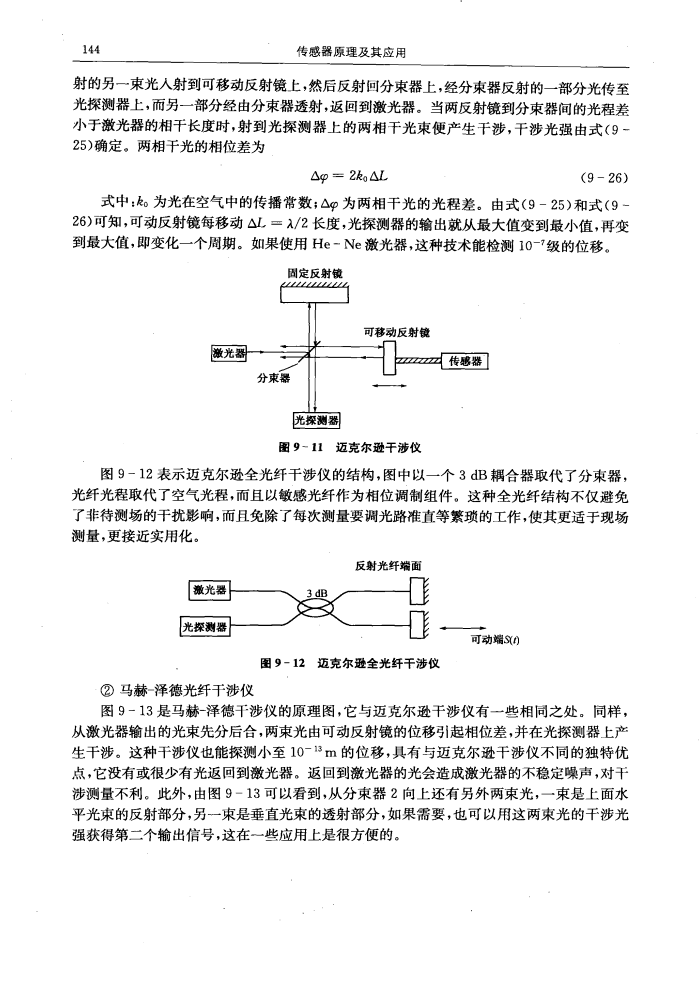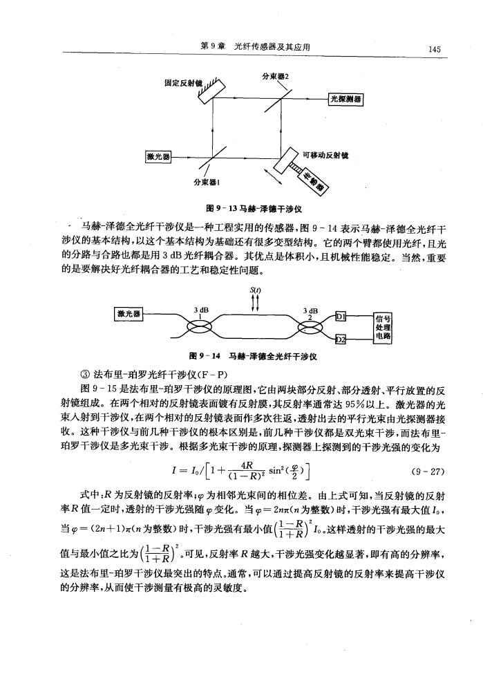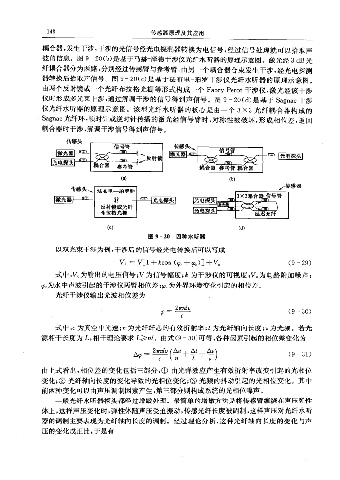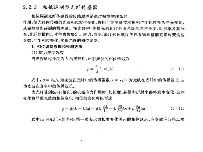 | 以下是引用片段: 9.2.2相位调制型光纤ac米兰app官方入口 相位调制光纤传感器的传感原理是通过被测物理场的 作用,使光纤内传播 的光波相位发生变化,再用干涉测出技术把相位变化转换为光强变化, 从 而检测出待测的物理里。在光纤中,传播光的相位是由光纤的光学长度、 折射率及其分 布、光纤的横向尺寸等参数决定。应力、应变、温度和角速 度等外界物理量能直接改变这些 参数,产生相位变化,实现光纤的相位调制。 |