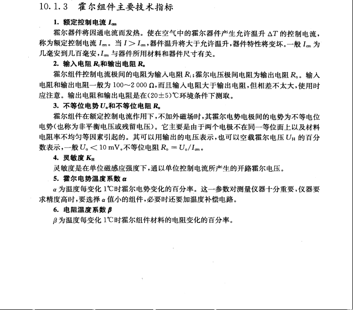 | 文摘: 霍尔组件控制电流极间的电阻为输入电阪R,霍尔电压极间电阻为输出电阻R0。 输入电阻和输出电阻一般为100~2 000 欧,而且输入电阻大于输出电阻,但相差 不太大,使用时应注意。输出电阻和输出电阻是在(20主5) 'C环境条件下测取。 |