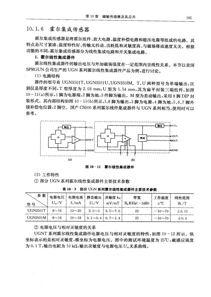 是将霍尔组件、放大电路、温度补偿电路和稳压电源 1.霍尔线性集成器件 霍尔线性集成器件的输出电压与外加磁场强度在一定范围内呈线性关 |