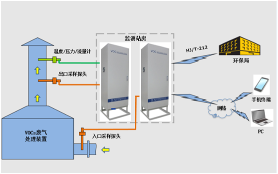 下图是常见工厂VOC排放检测报警系统以及厂界VOC在线监测系统: