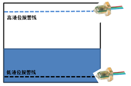 因为是共享饮品售卖机,所以在机器里面需要安装一个检测液位的,特别是得售卖热饮的饮品机,当饮品达到某一限制高度时,需停止再往容器里注水,否则会产生溢出,轻则导致泄漏,重则会引起机器内部线路受水短路后严重起火或者爆炸。但是当饮品降到某一高度时,这时也需要通过液位传感器能够检测到该液位的状况从而使加热装置停止运转,以免因此产生了干烧,造成不必要的损失。不过如下图所示,只要通过在共享售卖机内部的容器壁上装上两个液位开关,这样就能随时检测到容器内部的液体量,从而根据实际的需要来确定机器相关器件的启动和停止。
