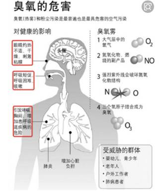 当每立方米不流通空气中的臭氧浓度达到0.1mg之时,人的喉咙,鼻腔等器官都会受到轻微的刺激;而当浓度达到0.2mg/m³之时,眼睛会有刺痛感呼吸道的疾病也会明显加剧,从而引发肺水肿等疾病。早在几年前,人类社会就要面对一个现实:臭氧层正在被破坏,如果这个现状一直持续,它就会逐渐失去阻挡紫外线和保护生灵的功能,而当它在对流层过度聚集,会使得叶子氧化,危害人和动物的呼吸系统。所以,看似强大的臭氧只要超过标准的上限,就会对世界万物都造成不可规避的损害!
