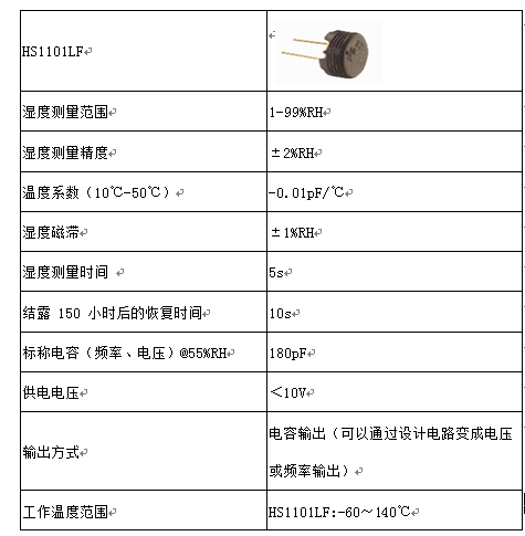 湿度对打印机有如此大的影响,那打印机内部必须对湿度值有一个监控和管理。首先是纸张方面,大多数纸质包装材料都含有防潮材料,所以将纸张存放在包装纸中直至需要打印才拆开,这对保护纸张有很大作用。通常打印机内部都会使用湿度模块来测量打印机内部空气相对湿度,如果湿度超过了小于20%RH,或者大于60%RH,那么在打印机内部加装的加湿器和除湿器就要工作起来了。推荐使用高分子湿敏电容HS1101LF制成湿度测量模块来测量打印机的空气相对湿度,下面是HS1101LF的参数
