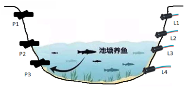 (2)当池内水位低于正常水位时:L3状态从on变为off,即变为输出一高电平,L1、L2和L4状态不变,从而当主控系统接收到了L3这一传感器从低电平变为高电平的输出变化时,将启动P2(给水泵)向养殖塘内注水。