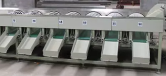 负责果品上线缓冲、匀果提升输送、并将水果适当翻转以便人工分拣出损毁的水果。