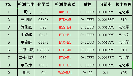 我国在《GB14554-93恶臭污染物综合排放标准》列出了以下八种嗅阈值比较低的气体:氨、三甲胺、硫化氢、甲硫醇、甲硫醚、二甲二硫、二硫化碳、苯乙烯。这八种气体有有机物,也有无机物,只要是硫化物,占其中五种,生活中常闻到臭气、异味也是来源于此。
