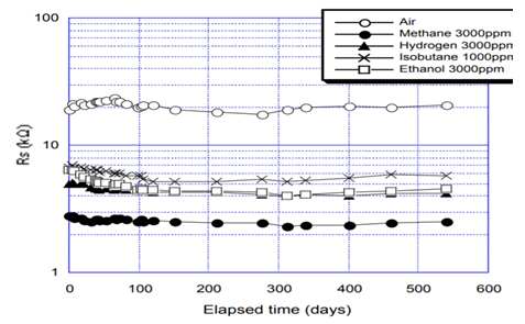 接下来我们再聊聊传感器的长期稳定性,毕竟性能不稳定波动太大的话会导致传感器误报延报的,会严重危及人民的生命财产安全。而费加罗的研发生产的TGS2611-E00上市时间足够长,经受住了市场的考验。长期稳定性可以参考下图。