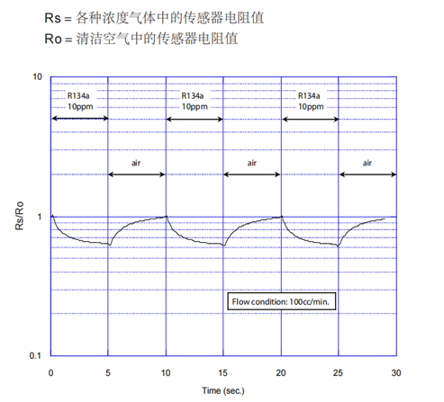 制冷剂传感器TGS3830不仅对R-134A、R22良好的灵敏度,同时响应速度和恢复速度都非常迅速,并且重复性非常好。