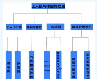 无人机大气监测系统主要包括无人飞行器、气体检测传感器、 数传/GPRS、地面站/服务器、 数据处理软件等构成。
