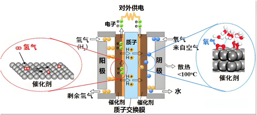 氢燃料电池是一种将氢气和氧气的化学能直接转换成电能的发电装置。其基本原理是电解水的逆反应,把氢和氧分别供给阳极和阴极,氢通过阳极向外扩散和电解质发生反应后,放出电子通过外部的负载到达阴极。