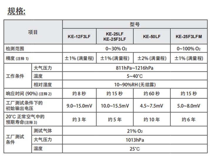 KE-LF系列无铅电池式氧气传感器