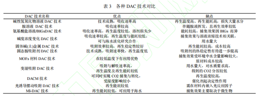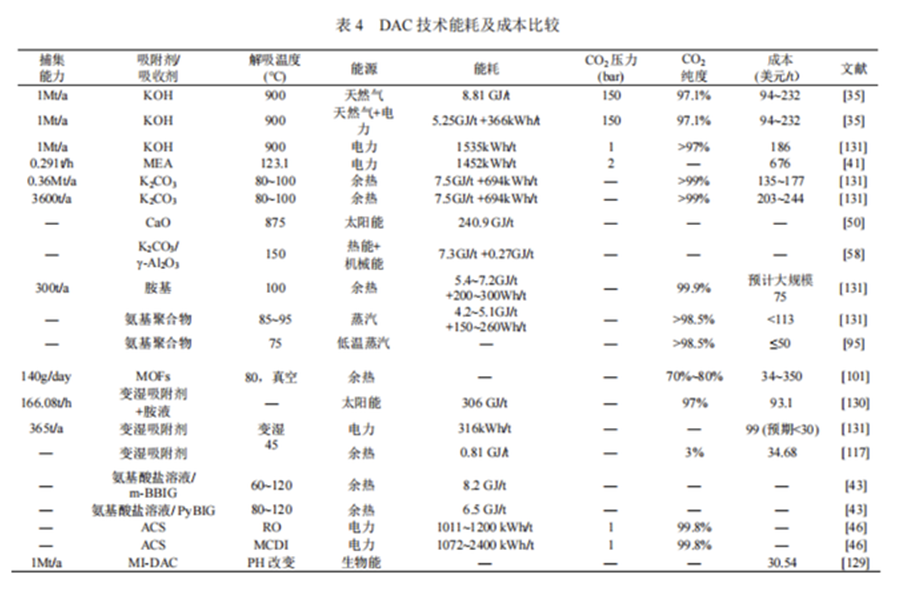 ①碱性氢氧化物溶液DAC技术吸收速率快,但再生温度高达900℃,再生能耗高,且伴随大量的水分损失;