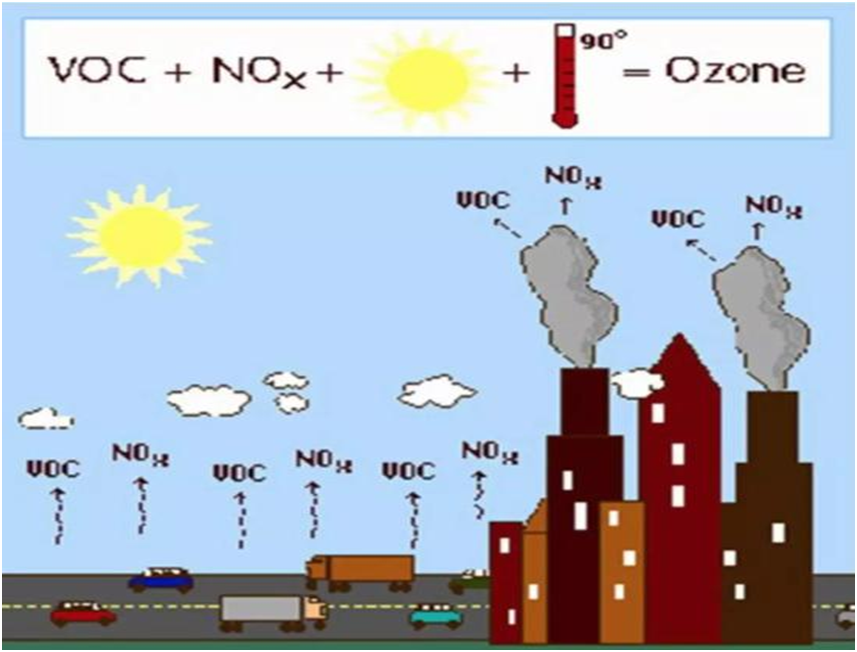 在工业发达国家,城市空气中臭氧的来源主要是汽车尾气经过光化学催化反应而生成的产物。由于汽车工业的快速发展,臭氧已成为工业发达国家的空气中的主要污染物。我国北京、广州、上海等城市的汽车尾气引起的光化学污染水平逐年上升,臭氧污染逞上升趋势。1997至2000年,北京市全年臭氧浓度超过国家二级标准(0.20 mg/m3)的时间有71天。