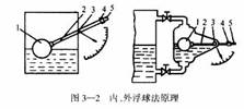 Float method: The method uses leverage the work shown in Figure 3-2 [4]. The figure: 1 - Float; 2 - connecting rod; 3 - shaft; 4 - balance weight; 5 - leverage. Float around the shaft to follow the level change rotation, rotation pointer on the drive shaft and the other end and leveraged balance weight balance, while the dial indicates the level value. Float within a float type and the law is outside the float type two, shown in Figure 3-2. Float method is mainly used to measure temperature, high viscosity of the liquid, but the smaller scale.