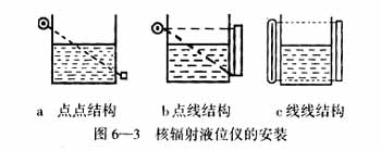 The formula: J0-through material strength before; J-through material strength after; μ-material on the γ-ray attenuation characteristics; d-material thickness. Liquid level meter from the radiation sources, detectors and processing circuits. Most used sources of cobalt or cesium -137 -60. Ionization chamber detectors, counting tube, scintillation counter, such as several, whose role is to detect the intensity of radiation penetrating substance. Radiation using non-contact level gauge installed, as shown in Figure 6-3. Figure 6-3a using point sources, detectors, measuring a smaller range; Figure 6-3b using point sources, linear detectors, the larger measuring range; Figure 6-3c using linear radioactive sources, detectors , the largest measuring range. In addition to γ-ray, the neutron radiation can also be used to measure liquid level. Neutron penetrating power is very strong, stronger than 10 times more γ-rays can penetrate up to 9-inch wall thickness steel container [10]. Ray level gauge, easy installation, precision measurements can meet the needs of a large tank, there are certain applications.