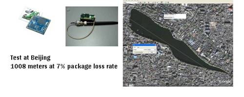 由上图可见,在北平后海地区进行的湖面环境测试时,该节点达到了1公里的通信距离。在换装5dBi增益天线后,IRIS节点在北平二环路上下班高峰时期的车辆密集情况下也达到了500米的通信距离。而其功耗相对原有的MicaZ节点降低了1/3左右。