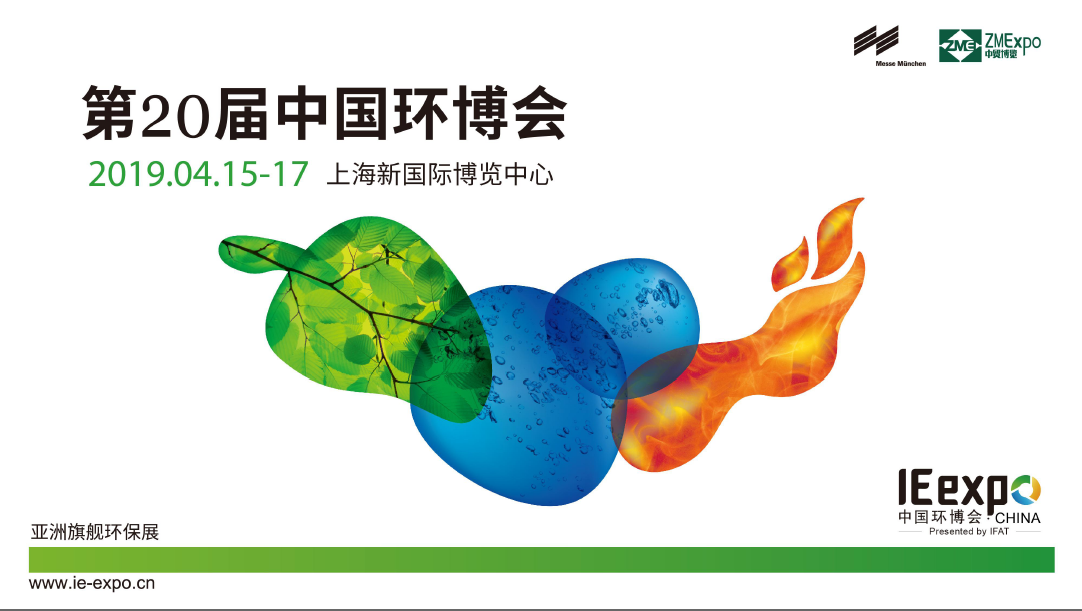 IE expo China 2019 第二十届中国环博会将于2019年4月15日-17日在上海新国际博览中心W1、W2、W3、W4、W5、E1、E2、E3、E4、E5、E6、E7、N5馆举行。该展会囊括水、固废、大气、土壤四大主题,是亚洲非常大且非常具有影响力的环保展览会。